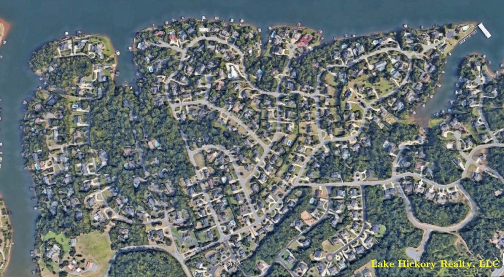Established in the mid 1980′s, homes range from 2400 heated square feet to 8000 and above with a variety of design. This lakefront community offers six phases including duplex townhomes and is located in NW Catawba county on the south side of the main channel of Lake Hickory. The Architectural Review Committee has high building standards to assure a community of unparalleled refinement. Minimum square foot requirements are 2300 for 1 story, 2800 for 1.5 to 2 story homes.